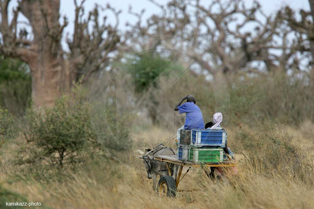Charrette devant une forêt de Baobabs, région de Thiés