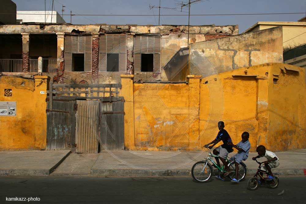 Enfants à vélo dans une rue de Saint-Louis du Sénégal