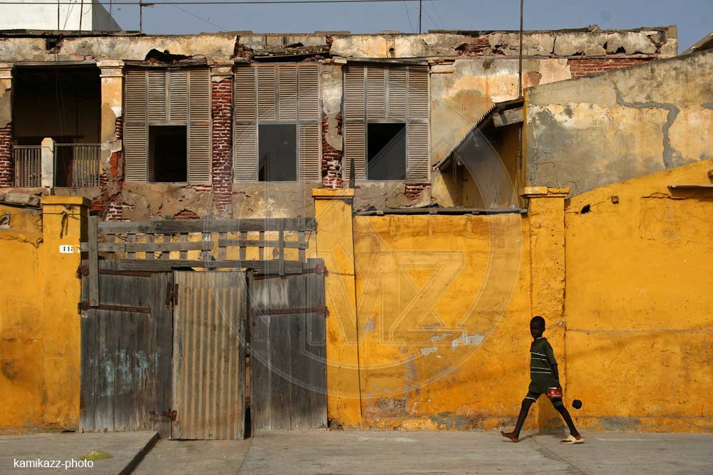 Accueil / Catalogue / Humains / Talibé devant une maison à Saint-Louis du Sénégal