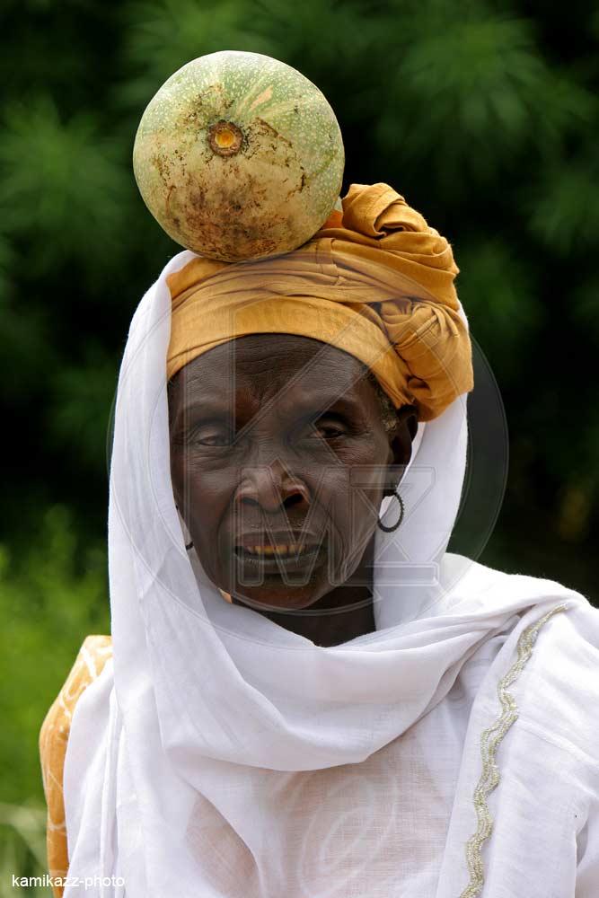 Accueil / Catalogue / Humains / Femme portant un fruit sur sa tête