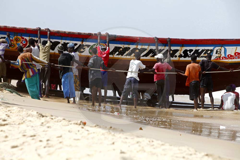 Accueil / Catalogue / Activités économiques / Kayar, mise hors d’eau d’une grande pirogue
