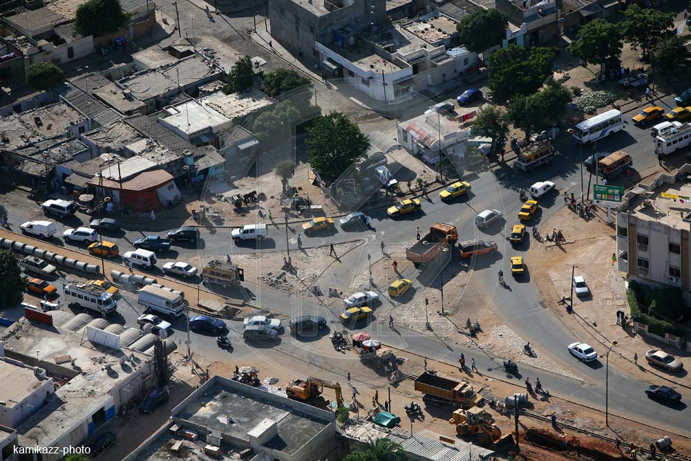 Vue aérienne d’une intersection routière à Dakar