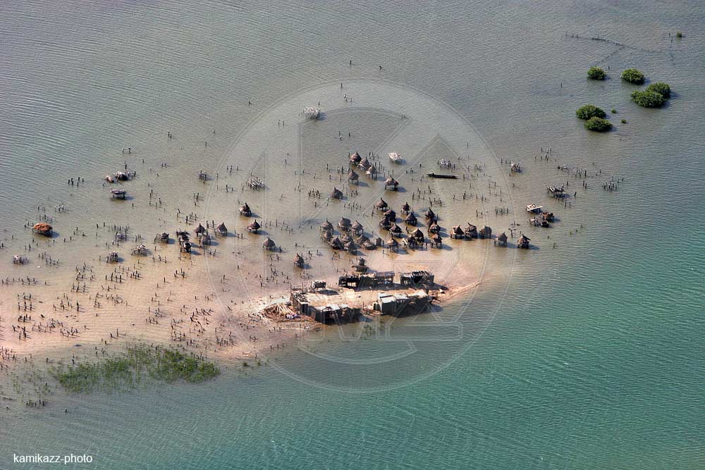 Accueil / Catalogue / Villes, villages, monuments / Vue aérienne des greniers à mil sur pilotis à Fadiouth, petite côte